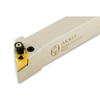 Nóż tokarski PDJNR 25X25 15 Akko to profesjonalne narzędzie przeznaczone do toczenia zewnętrznego, o zwiększonej sztywności dzięki trzonkowi 25 × 25 mm. Solidna konstrukcja umożliwia pracę w trudniejszych warunkach obróbkowych, gwarantując stabilność i redukcję drgań, co przekłada się na wyższą jakość powierzchni oraz dłuższą żywotność płytek skrawających.